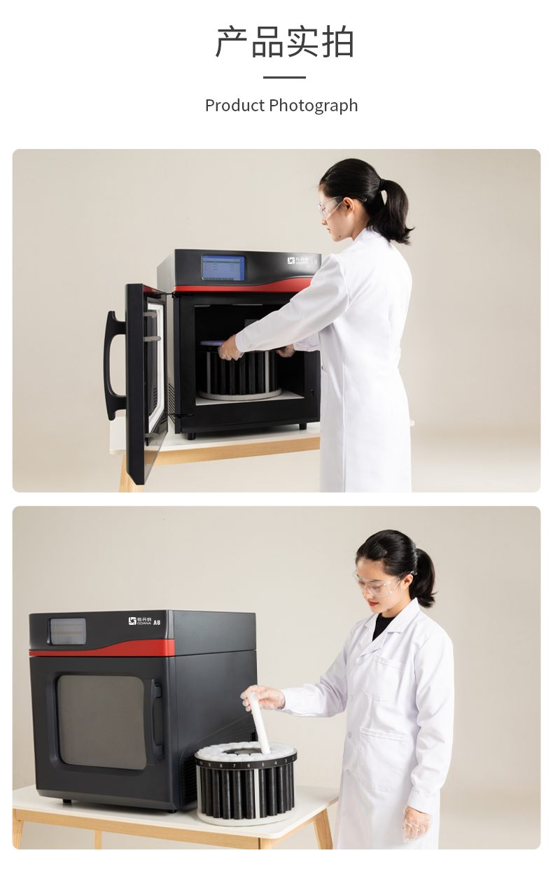 內(nèi)置大功率離心風(fēng)機(jī),消解完成后自動(dòng)原位快速冷卻罐體,10min左右溫 度從200℃降到安全溫度,縮短降溫降壓時(shí)間