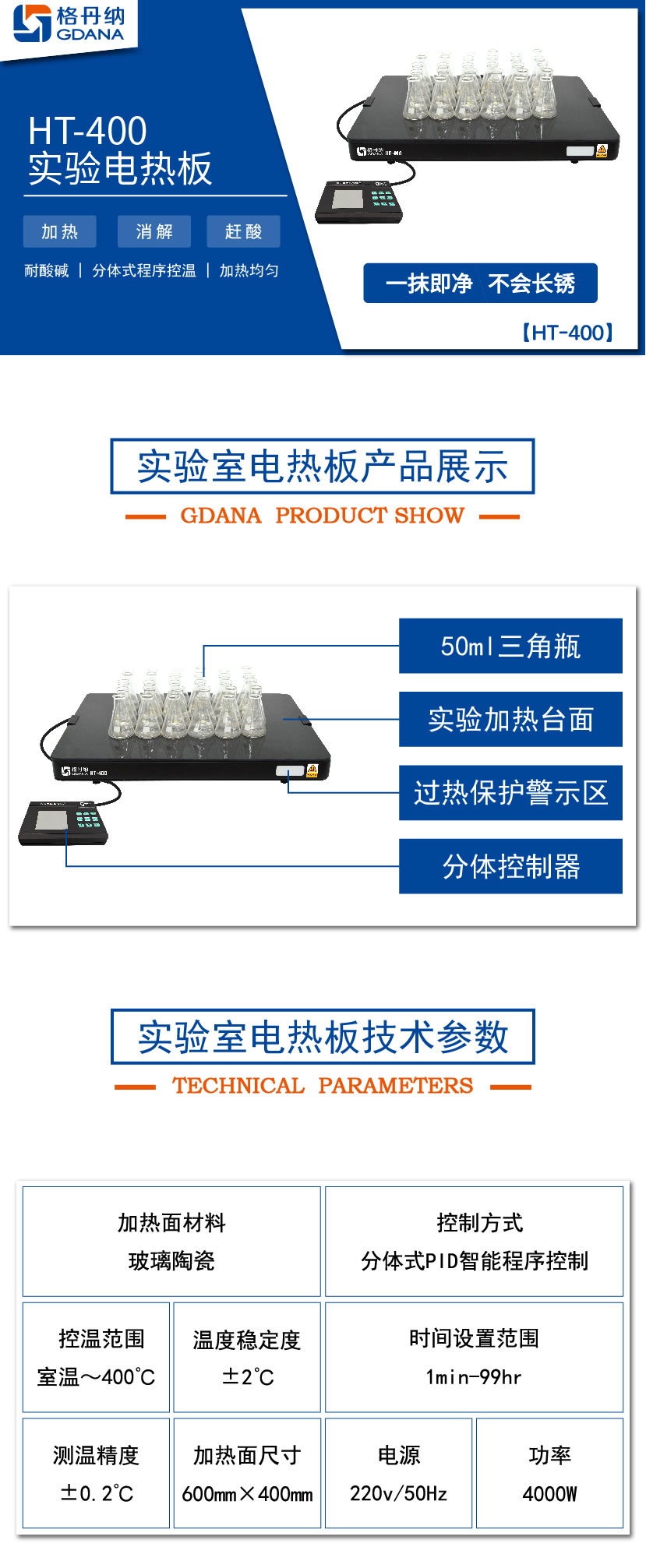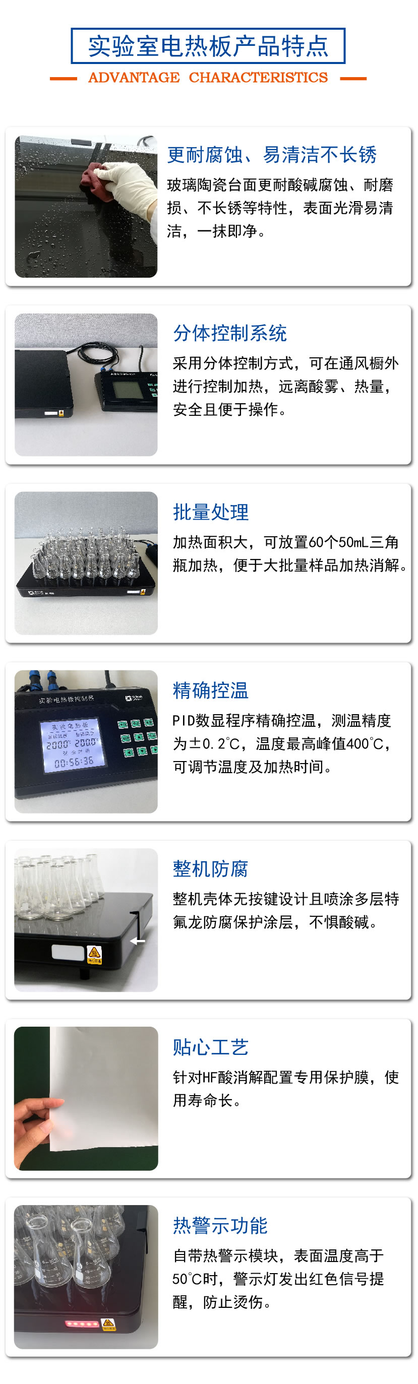 HT-400陶瓷加熱板專用于無機(jī)化學(xué)元素分析時(shí)對(duì)各類樣品作加熱、消煮、趕酸用的恒溫加熱裝置。臺(tái)面具有耐酸堿,不生銹等特性;分體PID程序數(shù)顯控溫,是實(shí)驗(yàn)室樣品預(yù)處理好助手。